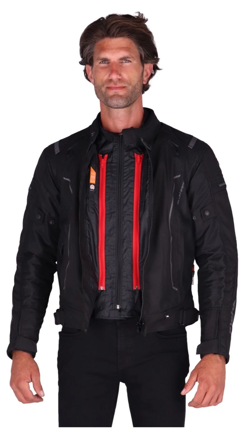 Tijdens hevige regenbuien is het Aquashell LTD membraan je beste vriend. Geen wolkje aan de lucht? Dan verwijder je het membraan en de thermovoering uit de motorjas en geniet je van goede ventilatie.