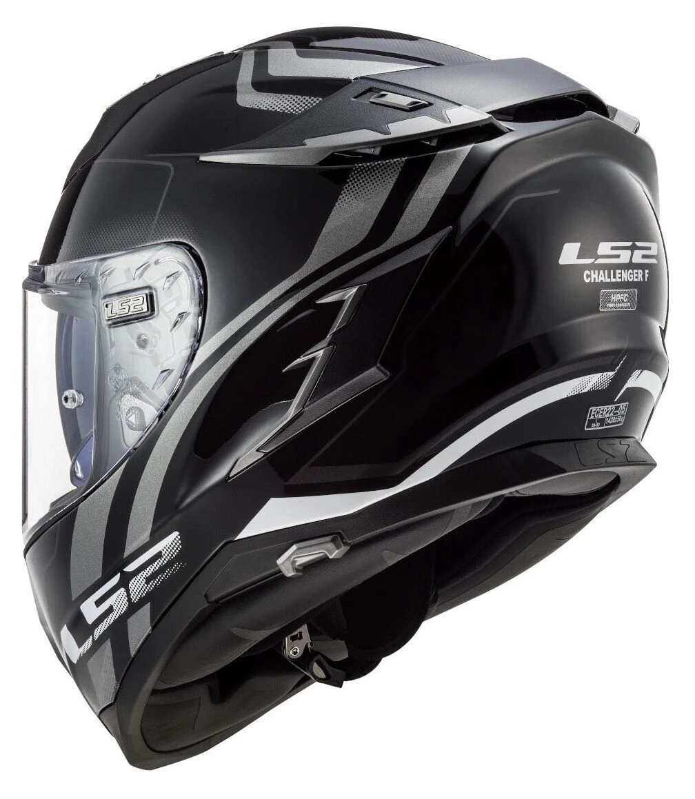 Hoewel LS2 hoofdzakelijk bekendstaat vanwege de budgetvriendelijke helmen, gooit het merk het met de FF327 Challenger Allert over een andere boeg. Hij moet de gevestigde orde opschudden en met een touring meets sport integraalhelm voorzien van alle te wensen opties, zijn ze zwaarbewapend. Het uitgangspunt is de sportrijder en dat is te zien aan de positionering en aerodynamica van de helm. Daarbij de kijkhoek van het vizier niet te vergeten. Standaard komt die met een transparant klasse A vizier dat vervorming van het beeld voorkomt. Een Pinlock lens voorkomt het condenseren. De hoogwaardige binnenvoering is antibacterieel en sneldrogend en intern zorgt het ventilatiesysteem voor een prettig klimaat. De HPFC glasvezel helmschaal komt in 3 maten en is gezien de verdere uitrusting met gemiddeld 1420 gram vrij licht te noemen.