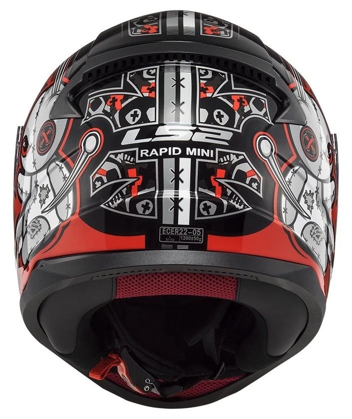 De gunstig geprijsde LS2 FF353 Rapid Mini Voodoo kinder motorhelm biedt de nodige veiligheid voor een zachte prijs. De FF353 heeft de juiste veiligheidseisen en is op het gebied van comfort en functionaliteit meer basic gehouden. Verder heeft deze helm voldoende ventilatie mogelijkheden en heeft de binnenvoering een antibacteriële en vocht afdrijvende werking.